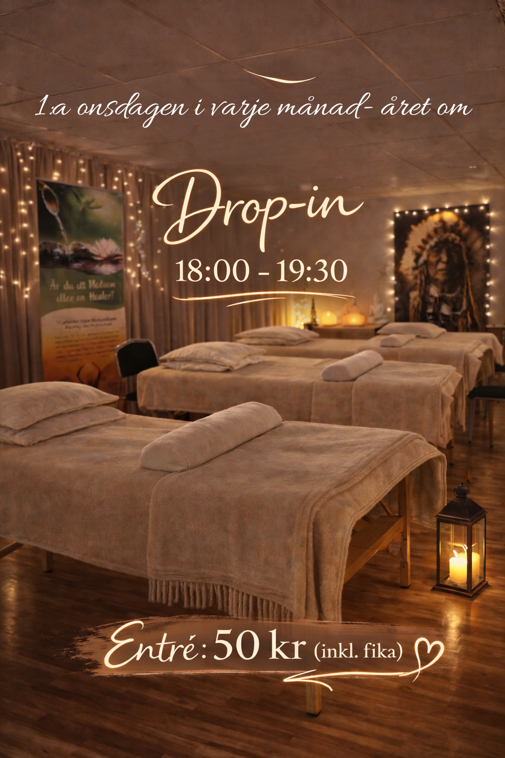 Under våra drop-in healingkvällar får du uppleva en mjuk och avkopplande stund för både kropp och själ. Behandlingen börjar med en kort, avslappnande massage som hjälper dig att släppa vardagens spänningar. Därefter får du ta emot andlig healing – en kärleksfull energi som stödjer kroppens naturliga balans och själens harmoni.